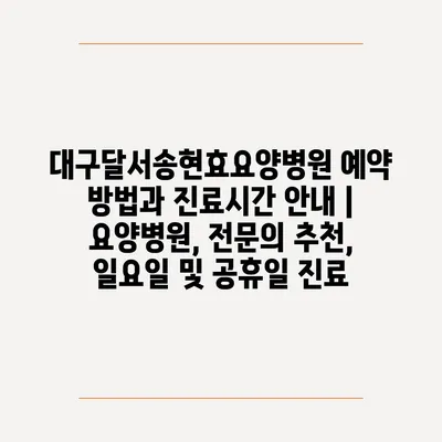 대구달서송현효요양병원 예약 방법과 진료시간 공지 | 요양병원, 전연락 추천, 일요일 및 공휴일 진료 에 대해 자주 묻는 질문 TOP 5
