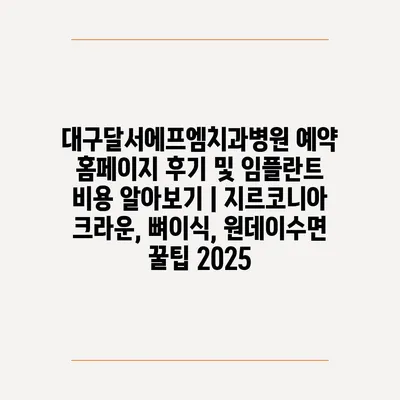 대구달서에프엠치과병원 예약 홈페이지 후기 및 임플란트 비용 알아보기 | 지르코니아 크라운, 뼈이식, 원데이수면 꿀팁 2025에 대해 알아보겠습니다.