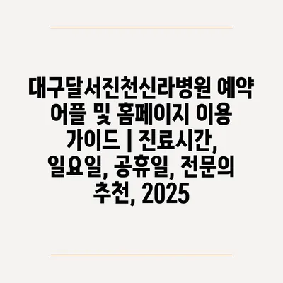대구달서진천신라병원 예약 어플 및 홈페이지 이용 설명서 | 진료시간, 일요일, 공휴일, 전연락 추천, 2025에 대해 소개합니다.