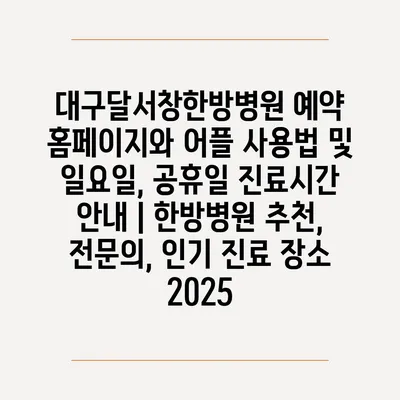 대구달서창한방병원 예약 홈페이지와 어플 사용법 및 일요일, 공휴일 진료시간 공지 | 한방병원 추천, 전연락, 인기 진료 장소 2025에 대해 알아보겠습니다.