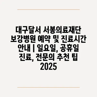 대구달서 서봉의료재단 보강병원 예약 및 진료시간 공지 | 일요일, 공휴일 진료, 전연락 추천 팁 2025 에 대해 자주 묻는 질문 TOP 5