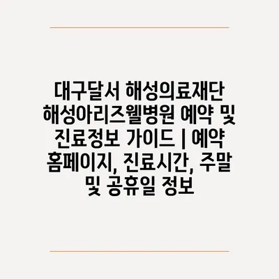 대구달서 해성의료재단 해성아리즈웰병원 예약 및 진료정보 설명서 | 예약 홈페이지, 진료시간, 주말 및 공휴일 정보 에 대해 자주 묻는 질문 TOP 5
