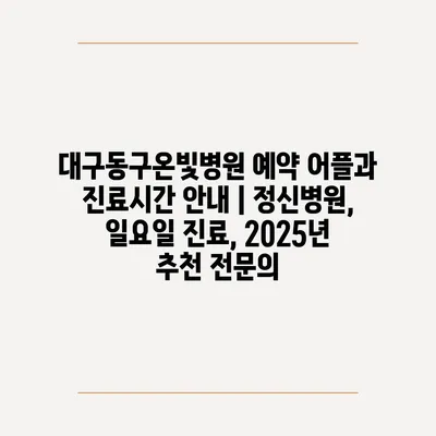 대구동구온빛병원 예약 어플과 진료시간 공지 | 정신병원, 일요일 진료, 2025년 추천 전연락 에 대해 자주 묻는 질문 TOP 5