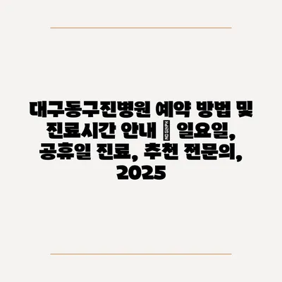 대구동구진병원 예약 방법 및 진료시간 안내 | 일요일, 공휴일 진료, 추천 전문의, 2025
