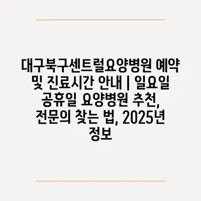 대구북구센트럴요양병원 예약 및 진료시간 공지 | 일요일 공휴일 요양병원 추천, 전연락 찾는 법, 2025년 정보 에 대해 자주 묻는 질문 TOP 5