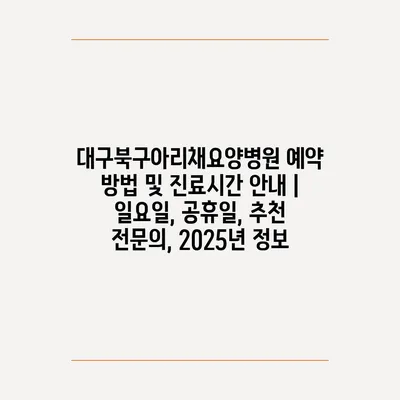 대구북구아리채요양병원 예약 방법 및 진료시간 공지 | 일요일, 공휴일, 추천 전연락, 2025년 정보에 대해 자주 묻는 질문 TOP 5