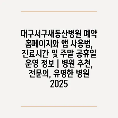✅ 대구서구새동산병원의 진료시간과 예약 방법을 알아보세요.