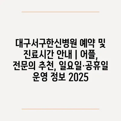 대구서구한신병원 예약 및 진료시간 공지 | 어플, 전연락 추천, 일요일·공휴일 운영 정보 2025에 대해 자주 묻는 질문 TOP 5