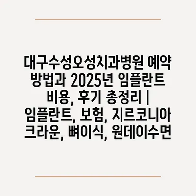 대구수성오성치과병원 예약 방법과 2025년 임플란트 비용, 후기 총정리 | 임플란트, 보험, 지르코니아 크라운, 뼈이식, 원데이수면 에 대해 자주 묻는 질문 TOP 5