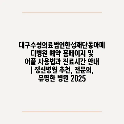 대구수성의료법인한성재단동아메디병원 예약 홈페이지 및 어플 사용법과 진료시간 공지 | 정신병원 추천, 전연락, 유명한 병원 2025에 대해 알아보겠습니다.