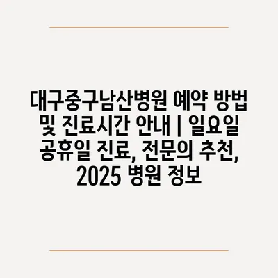 대구중구남산병원 예약 방법 및 진료시간 공지 | 일요일 공휴일 진료, 전연락 추천, 2025 병원 정보 에 대해 자주 묻는 질문 TOP 5