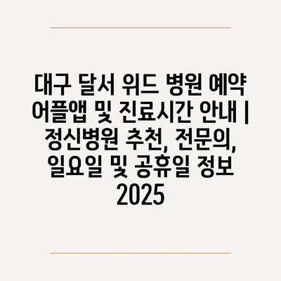 대구 달서 위드 병원 예약 어플앱 및 진료시간 공지 | 정신병원 추천, 전연락, 일요일 및 공휴일 정보 2025 에 대해 자주 묻는 질문 TOP 5