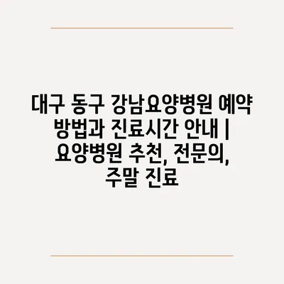 대구 동구 강남요양병원 예약 방법과 진료시간 공지에 대해 알려제공합니다.
