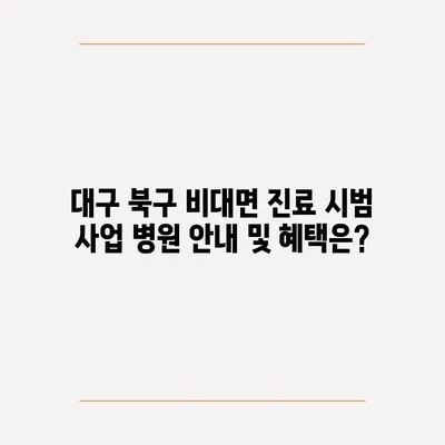 대구 북구 비대면 진료 시범 사업 병원 안내 및 혜택은?