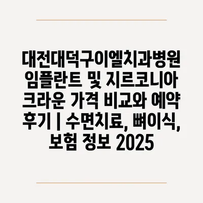 대전대덕구이엘치과병원 임플란트 및 지르코니아 크라운 가격 비교와 예약 후기 | 수면치료, 뼈이식, 보험 정보 2025 에 대해 자주 묻는 질문 TOP 5