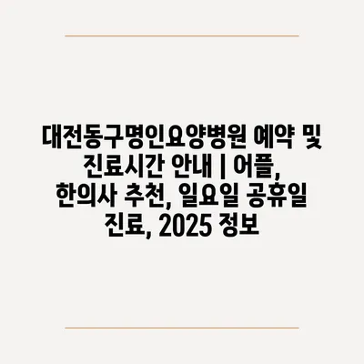 대전동구명인요양병원 예약 및 진료시간 공지 | 어플, 한의사 추천, 일요일 공휴일 진료, 2025 정보 에 대해 자주 묻는 질문 TOP 5