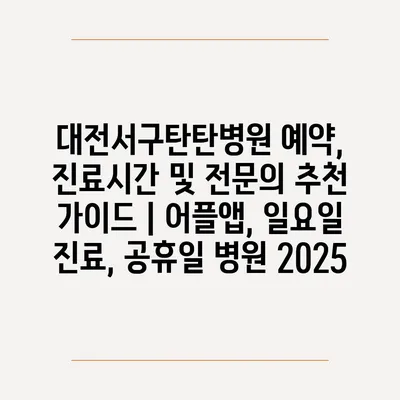 대전서구탄탄병원 예약, 진료시간 및 전연락 추천 설명서 | 어플앱, 일요일 진료, 공휴일 병원 2025에 대해 소개합니다.