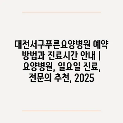 대전서구푸른요양병원 예약 방법과 진료시간 공지 | 요양병원, 일요일 진료, 전연락 추천, 2025에 대해 자주 묻는 질문 TOP 5