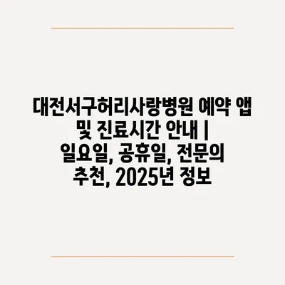 대전서구허리사랑병원 예약 앱 및 진료시간 공지 | 일요일, 공휴일, 전연락 추천, 2025년 내용을 소개합니다.