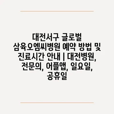 ✅ 대전서구 글로벌삼육오엠씨병원의 예약 방법을 알아보세요.