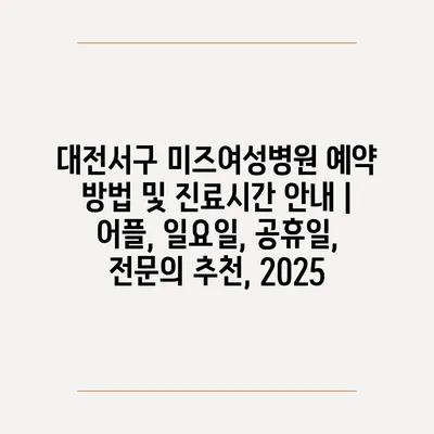 ✅ 대전서구 미즈여성병원 예약 방법을 자세히 알아보세요.