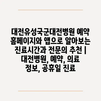 대전유성국군대전병원 예약 홈페이지와 앱으로 알아보는 진료시간과 전연락 추천 | 대전병원, 예약, 의료 정보, 공휴일 진료 에 대해 자주 묻는 질문 TOP 5