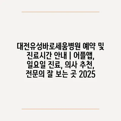 ✅ 유성바로세움병원 예약 방법과 진료 시간을 알아보세요!