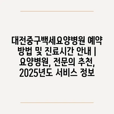 ✅ 대전중구백세요양병원의 예약 방법과 진료시간을 지금 바로 알아보세요!