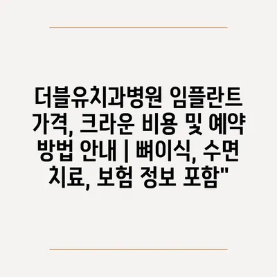 더블유치과병원 임플란트 가격, 크라운 비용 및 예약 방법 공지 | 뼈이식, 수면 치료, 보험 정보 포함” 에 대해 자주 묻는 질문 TOP 5