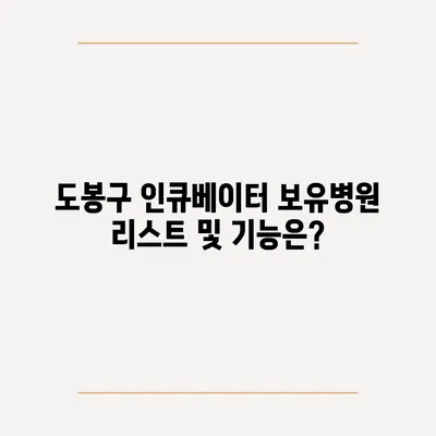 도봉구 인큐베이터 보유병원 리스트 및 기능은?