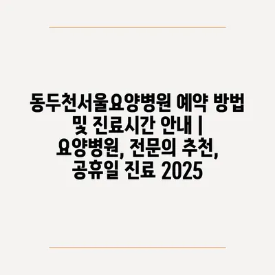 동두천서울요양병원 예약 방법 및 진료시간 공지 | 요양병원, 전연락 추천, 공휴일 진료 2025 에 대해 자주 묻는 질문 TOP 5
