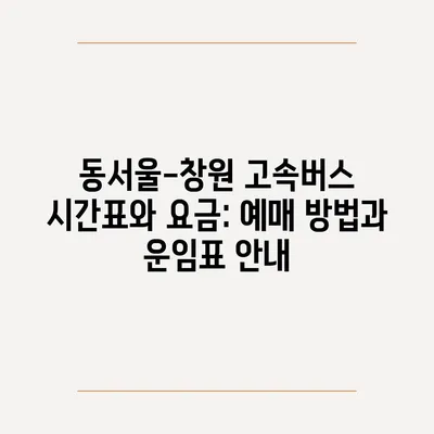💡 동서울-창원 고속버스의 시간표와 요금을 상세히 알아보세요. 💡