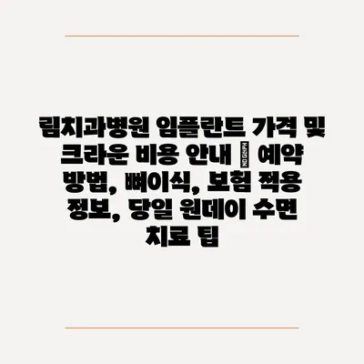 림치과병원 임플란트 가격 및 크라운 비용 공지 | 예약 방법, 뼈이식, 보험 적용 정보, 당일 원데이 수면 치료 팁에 대해 자주 묻는 질문 TOP 5