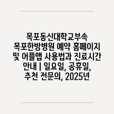 목포동신대학교부속 목포한방병원 예약 홈페이지 및 어플앱 사용법과 진료시간 공지 | 일요일, 공휴일, 추천 전연락, 2025년 에 대해 자주 묻는 질문 TOP 5