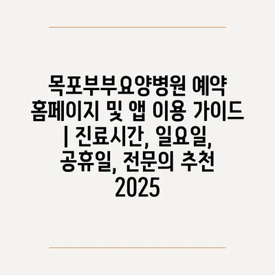목포부부요양병원 예약 홈페이지 및 앱 이용 가이드 | 진료시간, 일요일, 공휴일, 전문의 추천 2025