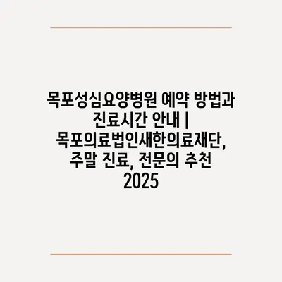 목포성심요양병원 예약 방법과 진료시간 공지 | 목포의료법인새한의료재단, 주말 진료, 전연락 추천 2025 에 대해 자주 묻는 질문 TOP 5