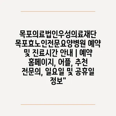 목포의료법인우성의료재단 목포효노인전문요양병원 예약 및 진료시간 공지 | 예약 홈페이지, 어플, 추천 전연락, 일요일 및 공휴일 정보” 에 대해 자주 묻는 질문 TOP 5