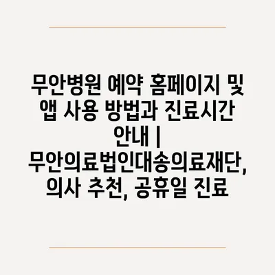 무안병원 예약 홈페이지 및 앱 사용 방법과 진료시간 공지 | 무안의료법인대송의료재단, 의사 추천, 공휴일 진료 에 대해 자주 묻는 질문 TOP 5