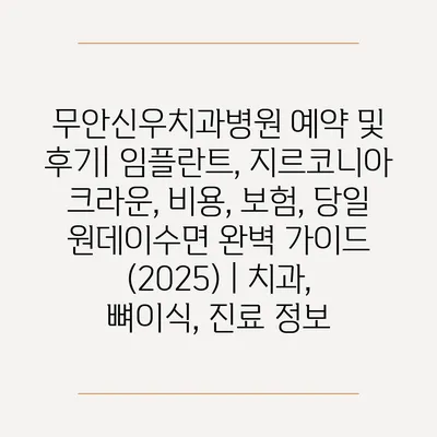 무안신우치과병원 예약 및 후기| 임플란트, 지르코니아 크라운, 비용, 보험, 당일 원데이수면 완벽 설명서 (2025) | 치과, 뼈이식, 진료 정보에 대해 알아보겠습니다.