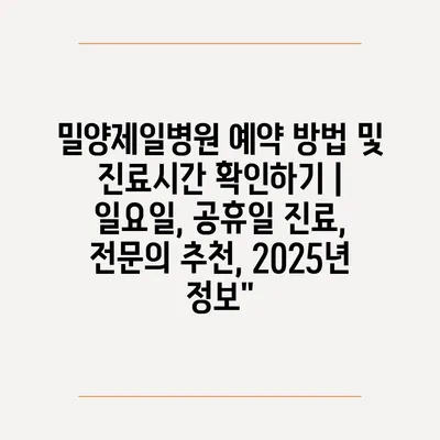 밀양제일병원 예약 방법 및 진료시간 확인하기 | 일요일, 공휴일 진료, 전연락 추천, 2025년 정보”에 대해 자주 묻는 질문 TOP 5