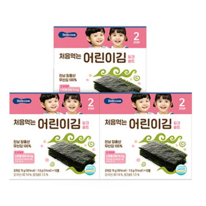 베베쿡 처음 먹는 어린이 김 15g, 핑크솔트, 3개
