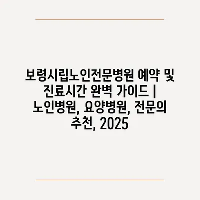 보령시립노인전문병원 예약 및 진료시간 완벽 가이드 | 노인병원, 요양병원, 전문의 추천, 2025