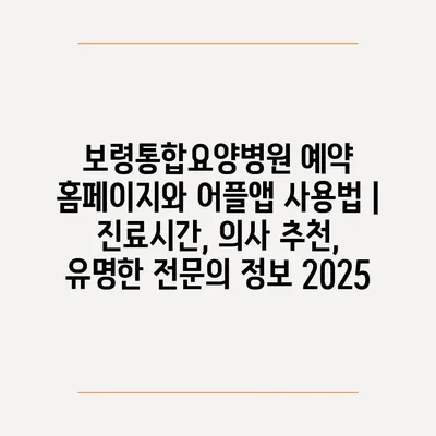 보령통합요양병원 예약 홈페이지와 어플앱 사용법 | 진료시간, 의사 추천, 유명한 전연락 정보 2025 에 대해 자주 묻는 질문 TOP 5