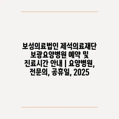 보성의료법인 제석의료재단 보광요양병원 예약 및 진료시간 안내 | 요양병원, 전문의, 공휴일, 2025