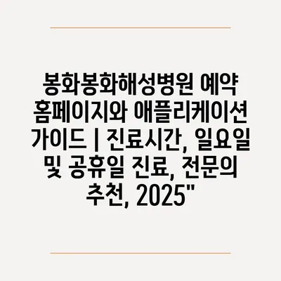 봉화봉화해성병원 예약 홈페이지와 애플리케이션 설명서 | 진료시간, 일요일 및 공휴일 진료, 전연락 추천, 2025″ 에 대해 자주 묻는 질문 TOP 5