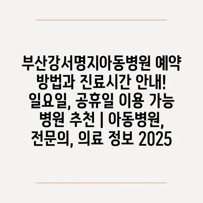 부산강서명지아동병원 예약 방법과 진료시간 공지! 일요일, 공휴일 이용 가능 병원 추천 | 아동병원, 전연락, 의료 정보 2025 에 대해 자주 묻는 질문 TOP 5