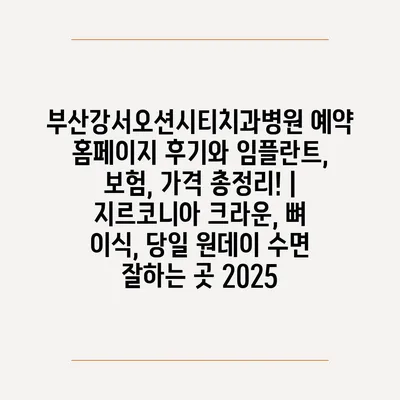 부산강서오션시티치과병원 예약 홈페이지 후기와 임플란트, 보험, 가격 총정리! | 지르코니아 크라운, 뼈 이식, 당일 원데이 수면 잘하는 곳 2025 에 대해 자주 묻는 질문 TOP 5