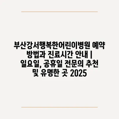 부산강서행복한어린이병원 예약 방법과 진료시간 공지 | 일요일, 공휴일 전연락 추천 및 유명한 곳 2025 에 대해 자주 묻는 질문 TOP 5