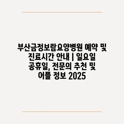 부산금정보람요양병원 예약 및 진료시간 안내 | 일요일 공휴일, 전문의 추천 및 어플 정보 2025