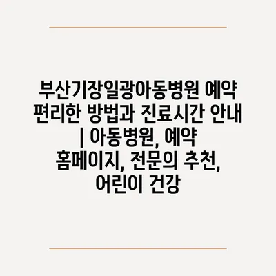 ✅ 부산기장일광아동병원의 예약 방법과 진료시간을 자세히 알아보세요.